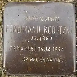 Seit Oktober 2006 erinnert in Nordhorn ein Stolperstein an Ferdinand Kobitzki.