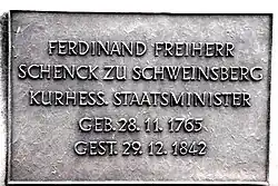 - Krafft Frhr. Schenck zu Schweinsberg: Im Dienste glanzloser Kronen. Aus dem Leben des kurhessischen Staatsministers Ferdinand Schenck zu Schweinsberg (1765–1842). Elwert, Marburg/Lahn 2001 (= Veröffentlichungen der Historischen Kommission für Hessen, Band 46. Kleine Schriften, Band 6).