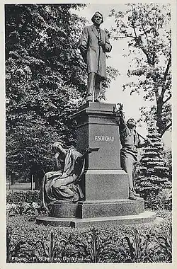 Die Werftangehörigen errichteten vor dem Hauptgebäude in Elbing ein Denkmal mit der Inschrift: „IHREM VEREHRTEN CHEF. DIE BEAMTEN UND ARBEITER“. Das von dem Berliner Bildhauer Wilhelm Haverkamp geschaffene Denkmal wurde am 18. November 1900 eingeweiht. Auf einem hohen Sockel befindet sich das Schichau-Standbild, zur Linken des Sockels reicht ihm ein stehender Arbeiter mit geschultertem Hammer einen Lorbeerkranz, zur Rechten sitzt die Muse Klio mit einem Modell des Schiffs Borussia in ihrer Hand. Die Klio-Figur wurde als Logo in den Briefkopf der Gesellschaft der Freunde und Förderer der Hamburgischen Schiffbau-Versuchsanstalt aufgenommen.