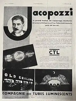 Fernand Jacopozzi (geboren am 12. September 1877 in Florenz, Italien; gestorben am 5. Februar 1932 in Paris[1]) war ein italienischer Unternehmer, Ingenieur und Elektriker aus Paris, der besonders für seine Arbeit im Bereich der Lichttechnik bekannt war[2][3].
