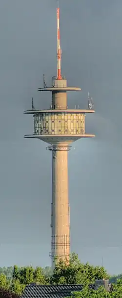 Der Fernmeldeturm Willich-Schiefbahn (auch Römerturm genannt) steht im Osten des Willicher Ortsteils Schiefbahn nahe der A52. Er ist 123 Meter hoch und wurde 1970[1] von der Deutschen Bundespost gebaut und im selben Jahr in Betrieb genommen[2]. Der Turm und die Plattform sind in massiver Bauweise aus Stahlbeton gebaut. Bei der Bauform handelt sich um einen standardisierten Typenturm mit der Typbezeichnung FMT 2[3]. Er wird von der Deutschen Funkturm GmbH verwaltet, die der Deutschen Telekom AG unterliegt. Der Turm ist nicht für die Öffentlichkeit zugänglich und ist ausschließlich zur Nutzung als Funkturm gebaut. Der Funkturm wird aktuell (2023) für Mobilfunk- und Richtfunkantennen genutzt. Früher wurde der Turm auch für terrestrisches Fernsehen und Radio genutzt. Der regionale Rundfunksender NE-WS 89.4 wurde bis 1996 von dort aus gesendet.