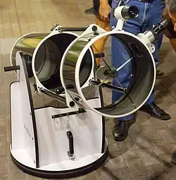 Bei astronomischen Spiegelteleskopen ist der Tubus nicht immer durchgängig ausgeführt, sondern kann – besonders bei Großteleskopen und beim Dobson-Teleskop – durch eine Gitterkonstruktion ersetzt sein. Unmittelbar am Hauptspiegel ist aber immer ein Rohransatz vorhanden. Kleinere Spiegelteleskope (wie etwa die weit verbreiteten Achtzöller) haben immer einen durchgängigen Tubus, wenn das Okular hinter dem durchbohrten Hauptspiegel sitzt (katadioptrisches Cassegrain-Teleskop), oder wenn sie vorne eine Korrektorplatte haben (Schmidt-Cassegrain- und ähnliche Systeme).