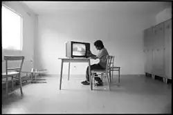 An der Schweizerischen Landesausstellung 1939 in Zürich wurde eine Schauspielgruppe mit einer von der ETH entwickelten Technik gefilmt und dem Publikum auf einem Bildschirm-Prototypen gezeigt. In Betrieb war auch eine Kamera, welche in die Halle eintretende Besucher aufnahm, und deren Bild sofort auch auf einem kleinen Bildschirm, der auf einem erhöhten Sockel sass, gesehen werden konnte. Da Fernsehen gesellschaftlich stark umstritten war, wurde ab Juli 1953 von Zürich aus ein Versuchsbetrieb aufgenommen; die Sendeantenne auf dem Zürcher Uetliberg konnte theoretisch eine Million Bewohner erreichen. Als erste konzessionierte Gesellschaft startete die Schweizerische Radio- und Fernsehgesellschaft (SRG) am 1. Januar 1958 einen regelmäßigen Sendebetrieb.[31]