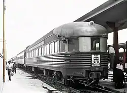 - El Águila Azteca war ein Personenzug, der zwischen Mexiko-Stadt über Nuevo Laredo und bis nach San Antonio in Texas verkehrte. Er wurde von der Ferrocarriles Nacionales de Mexicano (N de M) betrieben und war in den 1950er Jahren neben dem Texas Eagle die wichtigste Schienenverbindung Nordamerikas. Die Züge befuhren täglich die 1.541 Kilometer lange Strecke mit 29 Stationen und benötigten in Südrichtung knapp 32 Stunden, während es gen Norden mit 29:10 Stunden deutlich schneller ging.[2] Vorläufer hierfür war der ab 1915 verkehrende Sunshine Special, das Flaggschiff der Missouri Pacific Railroad. Er wurde mit Schlafwagen von St. Louis und Memphis über Laredo nach Mexiko-Stadt beworben. 1929 brachte das für seine Sonderangebote bekannte Reisebüro Raymond & Whitcomb den Land Cruise Liner auf den Markt, einen Zug mit Pullman-Schlafwagen, einem Restaurant und einem Aussichtswagen mit Fitnessraum und Friseursalon. Die Züge boten Touren von San Antonio nach Mexiko-Stadt und Guadalajara an, doch die Krise brachte den Zugbetrieb 1931 zum Erliegen.[3] Der Águila Azteca erschien erstmals im Fahrplan der MP nach der Einweihung des Texas Eagle im August 1948. Der Texas Eagle beendete den langjährigen Betrieb von Pullman-Wagen auf dem Sunshine Special. Allerdings reichte die begrenzte Anzahl stromlinienförmiger Wagen für den Betrieb nach Mexiko nicht aus. Der Águila Azteca wurde mit den Zügen Nr. 21 und 22 bedient und stellte die südliche Verlängerung des Texas Eagle dar. In San Antonio gab es daher einen Zugwechsel, immerhin jedoch am selben Bahnsteig.[3] Ab 1937 war Mexiko-Stadt einmal wöchentlich von St. Louis aus erreichbar, der Zug fuhr jeden Sonntagabend ab und kam am Dienstagabend in der mexikanischen Hauptstadt an. Der Zug galt als die schnellste Verbindung für Reisende aus Europa, die mit dem Dampfschiff in New York City ankamen und dann mit einem „Luxus-Touristenzug“ nach Mexiko-Stadt reisen wollten. Dieser Passagierdienst wurde bereits im Dezember 1940 wieder eingestellt.[4] 1952 wurden die mexikanischen Staatsbahnen mit eleganten Zügen der Schweizer Firma Schindler Waggon ausgestattet. Die Küchen der beiden Speisewagen, Mitla und Monte Albán genannt, wurden speziell für die Bedürfnisse der Köche entworfen und angepasst. Später wurden sie renoviert, um die Essenszubereitung effizienter zu gestalten. Außerdem gab es Caféteria-Wagen, in denen Kartenspielen und Rauchen erlaubt waren.[5] Die Schlafwagen hatten Abteile mit Bad. In den 1980er Jahren bestand ein Zug dann nur noch aus wenigen Waggons ohne Speisewagen und verkehrte lediglich von Nuevo Laredo nach Mexiko-Stadt.[4]