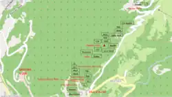 - Bereich 1 Eingang: 15-cm-Turmkanone 1958 L/42 T1, Munitionsmagazin, Batteriefeuerleitstelle, Bergstation der Standseilbahn Savatan – Dailly.