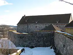 Das Stallgebäude wurde 1742 als Spritzenhaus und Pferdestall erstellt. Im Jahr 1777 verlängerte man das Gebäude bis zum kleinen Pulverturm, um mehr Platz für Kühe zu schaffen. Toiletten, Duschen und eine Sauna kamen zwischen 1941 und 1943 unter deutscher Besatzung dazu. Heute dient es weiterhin als Dusch- und Umkleideraum sowie als Toilettenhäuschen für Angestellte und Touristen.[13]