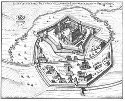 Die ursprüngliche Burg dürfte mit Haupt- und Vorburg ein Plateau von ca. 60 × 45 m belegt haben. Obwohl der Neubau der Festung ab 1557 keine mittelalterlichen Bauteile der Burg integrierte, lässt sich ihr Aussehen mittels eines Plans von 1551 und zahlreicher Schriftquellen rekonstruieren. Die Burg bestand aus einem alten und neuen Wohnbau, einem Bergfried in der Nordwestecke, einem Torhaus, einem Brunnen, Stallungen und Wirtschaftsgebäuden. Die ursprüngliche Burg ist bis 1532 durch die Anlage eines Zwingers, rechteckiger Streichwehren und vor allem eines Walls mit vorgeblendeter Mauer als Schutz gegen Artilleriebeschuss modernisiert worden. Der Wall war mit neun halbrunden Streichwehren bewehrt, die durch eine Galerie unter dem inneren Wallfuß miteinander verbunden waren.