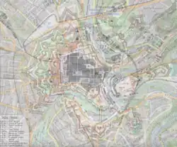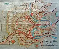 Am Ende der Entwicklung bestand die Festung Luxemburg aus drei Festungswällen, auf einer Fläche von 180 ha (Fläche der Stadt: ca. 120 ha). Im Innern der Festung gab es eine Vielzahl von Bastionen, im Zentrum 15 Forts, außerhalb noch einmal 9.[2] Ein Netz von 23 km unterirdischer Galerien (Kasematten) war verbunden mit über 40.000 m² bombensicheren Räumen.