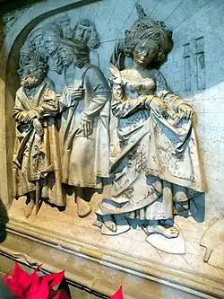 - Das Pflugscharenwunder: Relief an der Seite des Kaisergrabes im Bamberger Dom, Tilman Riemenschneider, 1499–1513[40]