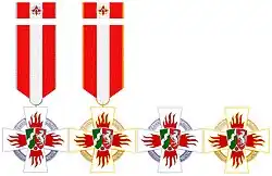 - in Gold: für besonders mutiges und entschlossenes Verhalten im Zusammenhang mit einem Feuerwehreinsatz.[4]