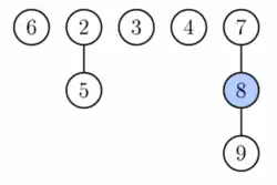 Irgendwann muss jedoch eine Reihenfolge in den Heap eingeführt werden, um die gewünschte Laufzeit zu erreichen. Insbesondere wird der Grad der Knoten (hier bedeutet Grad die Anzahl der Kinder) ziemlich niedrig gehalten: Jeder Knoten hat höchstens den Grad und die Größe eines Teilbaums, der in einem Knoten des Grades k verwurzelt ist, beträgt mindestens Fk+2, wobei Fk die k-te Fibonacci-Zahl ist. Dies wird durch die Regel erreicht, dass wir höchstens ein Kind von jedem Nicht-Wurzelknoten abschneiden können. Wenn ein zweites Kind abgeschnitten wird, muss der Knoten selbst von seinem übergeordneten Knoten abgeschnitten werden und wird zur Wurzel eines neuen Baums. Die Anzahl der Bäume wird in der Operation extractMin verringert, bei der Bäume miteinander verknüpft werden.