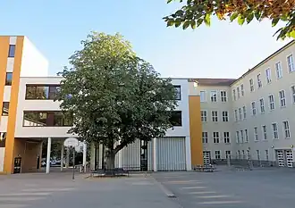 Seit 2010 gibt es mit einer Doppelstockbrücke („Übergang“) eine Verbindung zwischen diesen Gebäuden, in dieser befinden sich auch Unterrichtsräume. Direkt unter der Brücke wurde die Mensa gebaut.