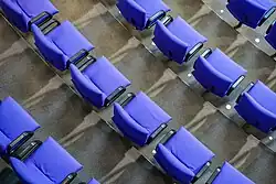 - ↑ a b c d Was Sie noch nicht über die blauen Stühle im Bundestag wussten, Focus Online, 23. September 2017, abgerufen am 26. März 2020.