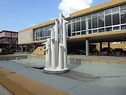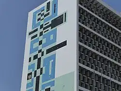 - João Aires, mit einem farbigen Panel mit geometrischen Mustern an der Außenwand des Gebäudes sowie einem portugiesischen Handarbeitsteppich (sog. „Tapete de Arraiolos“), hergestellt vom lokalen Unternehmen Fábrica de Tapetes da Zambézia, ausgestellt in der Eingangshalle