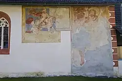 Das Gotteshaus ist ein einschiffiger, romanischer Bau mit einem niedrigeren, eingezogenen und gerade abgeschlossenen Chor. Der Dachreiter wird von einer Zwiebelhaube bekrönt. Die Glocke goss im 15. Jahrhundert Peter Pfinzing. Der Chor besitzt eine bis zum Fenster reichende Exedra. An der Südwand hat sich ein romanisches Hochfenster erhalten. Die anderen Fenster in Langhaus und Chor sind mit zweiteiligem, neugotischem Maßwerk ausgestattet. Die ornamentalen Glasscheiben entstanden 1891. An der Langhausnordwand überdeckt ein Fresko des heiligen Martin aus dem 17. Jahrhundert eine thematisch gleiche Darstellung aus dem 15. Jahrhundert. Daneben befindet sich ein spätgotisches Freskenfragment des heiligen Christophorus. Das profilierte, spitzbogige, gotische Westportal wird von einer offenen Vorhalle geschützt. Links vom Portal befindet sich ein Kruzifix in einem Holzschrein aus dem 17. Jahrhundert.