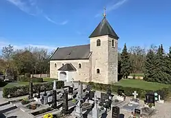 Die kleine romanische Chorturmkirche ist von einem Friedhof umgeben.