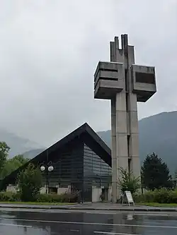 Der moderne Kirchenbau bei der Brücke über den Gurglbach wurde von 1965 bis 1967 nach Plänen des Architekten Norbert Heltschl errichtet und am 12. November 1967 geweiht.