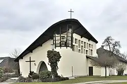 Ab Juli 1959 begann der Bau der neuen Kirche. Der heutige Sakralbau besitzt kleinere Ausmaße als sein Vorgänger. Ein Ausschnitt aus dem Reslfeld-Fresko wurde an der Mauer hinter dem Altar aufgetragen, die alte Marienstatue konnte ebenfalls wieder aufgestellt werden. Die Konsekration der Kirche leitete Abt Berthold Niedermoser am 4. Mai 1961. Eine 70 kg schwere „Florianiglocke“ versieht seit 1996 ihren Dienst.[3]