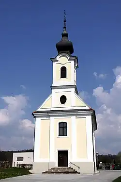 Erstmals erwähnt wurde die Kirche 1697. Diese war mit großer Wahrscheinlichkeit ein einfacher mittelalterlicher Bau aus Stein, mit einem gewölbten Chor und holzgedeckten Schiff. Im Jahr 1759 erfolgte ein Neubau der Kirche, den Bauern des Ortes durchführten. Aus Geldern der Kirche und Spenden großzügiger Herrschaften wurde 1811 die heutige Kirche erbaut. Diese neu erbaute Kirche bietet für 200 Personen Platz. Um die Kirche liegt der Friedhof. Merkmäler sind der gemauerte Turm und die ursprüngliche Glocke, die von der alten Kirche übernommen wurde.[1]