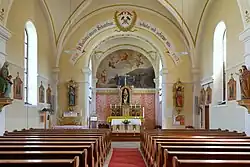 Der neubarocke Kirchenbau besitzt eine neugotische Ausstattung. 1921 schuf der Linzer Maler Andreas Strickner das Altarbild „Bittgang der Bergleute zur hl. Barbara“, für das dem Künstler Thomasroither Bergkappen Modell standen.