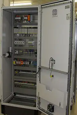 Häufig werden Schaltschränke auch mit einem sog. Dachlüfter ausgestattet (so genannt, weil er im Dach des Schaltschrankes integriert ist). Der Dachlüfter saugt die warme Abluft aus dem Schaltschrank und gibt sie an die Umgebung ab. Bei den Dachlüftern handelt es sich in der Regel nicht um Filterlüfter. Der Staubfilter befindet sich getrennt vom Lüfter in einer Lufteintrittsöffnung im unteren Teil des Schrankes.