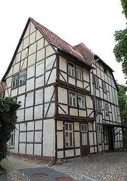 - ↑ Hans-Hartmut Schauer: Quedlinburg, Fachwerkstatt/Weltkulturerbe. Verlag Bauwesen, Berlin 1999, ISBN 3-345-00676-6, Seite 64.