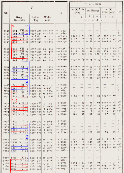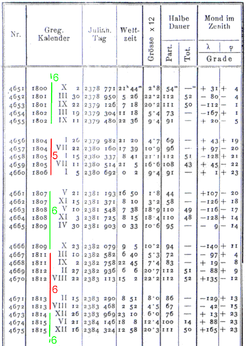 Auszug aus dem Canon der Mondfinsternisse[1] Oppolzers.