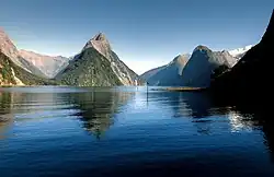 Fiordland ist eine geographische Region im Südwesten der Südinsel von Neuseeland. Die Region umfasst eine Naturlandschaft, die von bis zu 2723 m hohen, zum Teil steil ansteigenden Bergen, tief ins Land einschneidenden Fjorden, zahlreichen Flüssen und Seen, ergiebigen Regenfällen, einem dichten Regenwald und einer fast unberührten und einzigartigen Natur gekennzeichnet ist.[1]