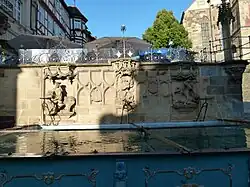 - ↑ a b Beschreibung des Marktplatzes und des Brunnens auf der Seite von Schwäbisch Hall ( vom 10. Dezember 2013 im Internet Archive)