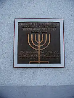 Um 1825 lebten im Ort 16 Personen jüdischen Glaubens. Über die Einrichtung eines Bethauses oder einer entsprechenden Begräbnisstätte im Ort selbst wurde in der Folge nicht berichtet.[9] Wahrscheinlich wurden diesbezügliche Einrichtungen, wie ein kleines Bethaus und ein kleiner jüdischer Friedhof am jetzigen Marienbornweg in (Alt)-Hürth genutzt. Amtliche Unterlagen der Bürgermeisterei Hürth geben für das Jahr 1847 insgesamt 92 gemeldete Personen jüdischen Glaubens an.[32] Von da an ging die Zahl durch Wegzug in die Städte zurück. Mit der ehemaligen Bürgermeisterei Efferen waren es 1933 noch 91. Die Familie Ernst Levi aus Fischenich konnte sich in die USA retten. Im Juli 1940 waren es in Hürth noch elf Personen.[33] Die Nachkriegserhebungen erbrachten, dass lediglich noch 5 Personen in der Gesamtgemeinde lebten.[34]