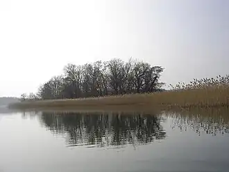 Es handelt sich um eine 150 Meter lange und 40 Meter breite Insel, die heute mit Bäumen bestanden ist. Ungefähr in der Mitte der Insel liegt am Ostrand ein altes ruinöses Fischerhaus aus dem Jahr 1729. Hier übernachteten bis in die 1970er Jahre Fischer aus der Umgebung, die auf dem Tollensesee und der nahen Lieps ihrer Arbeit nachgingen.