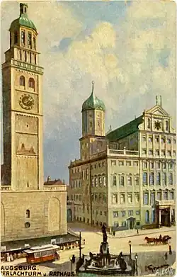 - ↑ Stadt Augsburg (Hrsg.): Die Sanierung des Rathauses und des Perlachturmes. Hofmann-Druck KG, 1985, Seite 55.