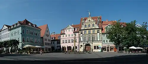 Aus den Jahren 1934/1935 stammt die Sparkasse am Fischmarkt (heute Sparkasse Mittelthüringen) rechts des Rathauses. Sie ist im Stil der Neuen Sachlichkeit nach dem Entwurf von Johannes Klass erbaut worden. Durch US-amerikanischen Artillerie-Beschuss im April 1945 verlor der Bau seine dekorativen Wandgemälde an der Fassade und die neun Meter hohen Farbglasfenster.