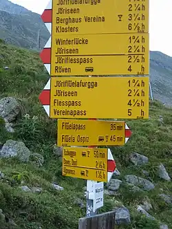 - ↑ Andrea Schorta: Wie der Berg zu seinem Namen kam. Kleines Rätisches Namenbuch mit zweieinhalbtausend geographischen Namen Graubündens. Terra Grischuna Verlag, Chur und Bottmingen/Basel 1988, ISBN 3-7298-1047-2, S. 87.
