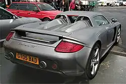 Der ausgefahrene Heckflügel eines Porsche Carrera GT