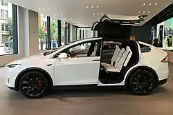 Eine Variante sind die sogenannte Falcon Wings des Tesla Model X, bei dem sich oberhalb der Fenster ein weiteres Gelenk befindet, wodurch der Platzbedarf beim Öffnen in engen Parklücken sowie in niedrigen Garagen verringert wird.