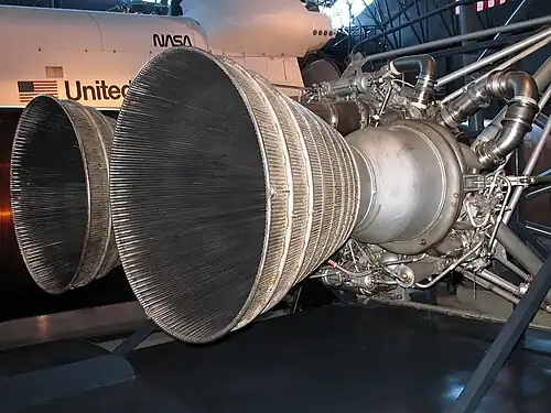 An die Brennkammer schließt unmittelbar die Schubdüse in Form einer Lavaldüse an. Diese besteht aus einer Einschnürung zur Geschwindigkeitssteigerung des Gases, dem sogenannten Düsenhals, der wiederum in einen glockenförmigen oder kegelförmigen Teil übergeht, in dem durch die Expansion der Gase der Schub erzeugt wird. Die in Entwicklung befindlichen Aerospike-Triebwerke sollen ohne eine solche Schubdüse im herkömmlichen Sinne auskommen.