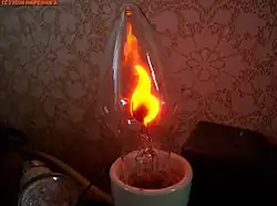 Flackerkerzen sind Leuchtmittel, die das flackernde Licht von Kerzen imitieren. Dabei handelt es sich um speziell konstruierte Glimmlampen mit vergrößerter Oberfläche der Kathode. Diese besteht aus teilweise oxidiertem, ungereinigtem Eisenblech, weshalb das Glimmlicht die Kathodenfläche nur teilweise bedeckt. Die durch den Kathodenfall beschleunigten positiven Ionen treffen lokal begrenzt auf die Kathode und verändern deren Oberfläche. Das ändert die Brennspannung geringfügig, worauf sich die Glimmentladung zu einer anderen Fläche mit geringerer Brennspannung verlagert. Bei normalen Glimmlampen werden die Eisenelektroden durch Kathodenzerstäubung gereinigt, bevor die Lampe fertiggestellt wird. Deshalb ist dort das Glimmlicht auch gleichmäßig verteilt.