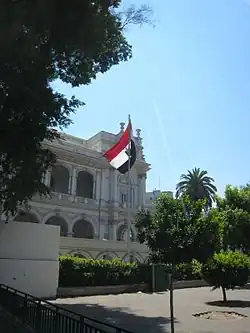 Zugleich forderten nationale Parteien zunehmend die Unabhängigkeit Ägyptens, die 1919 mit einer Revolution ihren Höhepunkt fand. Während die Nationalisten rote Flaggen mit weißen Halbmonden und Sternen trugen, um ihren Protest gegen die britische Herrschaft auszudrücken, tauchte 1919 eine grüne Fahne mit Halbmond und Kreuz auf, die eine weitere Gruppe symbolisch vertrat. Diese Fahne symbolisierte, dass sowohl Muslime als auch koptische Christen die Unabhängigkeitsbestrebungen unterstützten.[5]