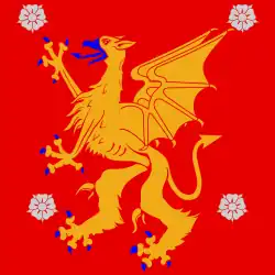 Auf rotem Grund befindet sich dort ein goldener Drache mit Flügeln und Schwanz, blauer Zunge und Krallen. Jede Ecke ist mit einer silbernen Rose ausgefüllt. Das Wappen wurde am 18. Januar 1884 auf der Grundlage zweier früherer Wappen eingeführt und 1972 überarbeitet.