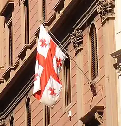 Die Flagge von Georgien (georgisch საქართველოს დროშა), in Georgien auch bekannt als Fünfkreuzflagge (georgisch ხუთჯვრიანი დროშა) wurde mit dem Parlamentsbeschluss am 26. Januar 2004 gültig.
