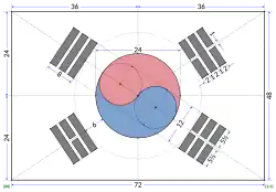 Die Grundfarbe Weiß ist ein Symbol für Reinheit und Friedfertigkeit. Sie steht auch für die traditionell von den Koreanern getragene weiße Kleidung. Das rot-blaue „Eum-und-Yang“-Symbol Taijitu, die koreanische Variante des Yin und Yang, steht im Zentrum der Flagge. Der obere, rote Teil wird Yang genannt, der untere, blaue heißt Eum. Dieses Symbol steht für das Universum und die in ihm enthaltenen Gegensätze, beispielsweise Feuer und Wasser, Tag und Nacht, dunkel und hell, maskulin und feminin, Wärme und Kälte und so weiter.