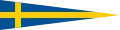 | Örlogsvimpel (Kommandozeichen des Fregattenkapitäns (Kommendörkapten), des Korvettenkapitäns (Örlogskapten) oder des Kapitänleutnants (Kaptenlöjtnant bzw. Kapten)) | Wimpel, der mit den Farben im Verhältnis 1:1 horizontal geteilt ist | ||