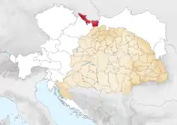 Der Fluss Leitha bildete streckenweise die Grenze zwischen den beiden Reichshälften Österreich und Ungarn (entspricht der heutigen burgenländischen Westgrenze).