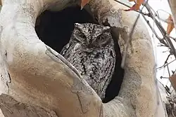 Fleckenkreischeule im Tageseinstand