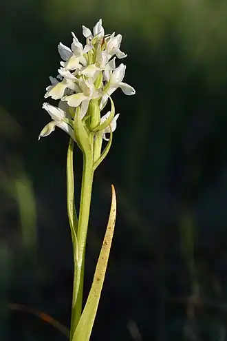 - Strohgelbes Knabenkraut (Dactylorhiza incarnata subsp. ochroleuca (Wüstnei ex Boll) P.F.Hunt & Summerh.): Es kommt in Europa vor.[3] Die ökologischen Zeigerwerte nach Landolt et al. 2010 sind in der Schweiz für diese Unterart: Feuchtezahl F = 4+w (nass aber mäßig wechselnd), Lichtzahl L = 4 (hell), Reaktionszahl R = 4 (neutral bis basisch), Temperaturzahl T = 3+ (unter-montan und ober-kollin), Nährstoffzahl N = 2 (nährstoffarm), Kontinentalitätszahl K = 3 (subozeanisch bis subkontinental).[9]