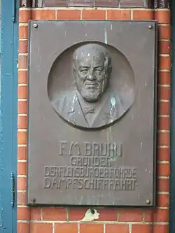 Als Gründer der Flensburger Fördeschifffahrt gilt der Kaffeehändler Friedrich Mommse Bruhn (1832–1909), der mit dem Dampfschiff Seemöwe 1866 den ersten Fördedampfer in Dienst stellte. Dieser, nach Vorbild der Hamburger Alsterdampfer gebaut und gut siebzehn Meter lang, war eigens in Hamburg gebaut worden. Die eigentliche Eröffnungsfahrt fand am 1. Mai 1866 statt.[10] Es entstand ein lukrativer Linienverkehr der Dampfer-Compagnie, der von Flensburg über Kollund, Ekensund und Gravenstein am Nordufer bis nach Glücksburg-Sandwig am Südufer führte. Damals markierte die Förde noch keine Staatsgrenze, sondern beide Ufer gehörten seit 1867 zu Preußen. Mit weiteren Schiffen, wie zwei Jahre später der Seeadler und die Heinrich-Adolph, sowie neuen Anlegestellen in Randershof, Rinkenis-Sandacker und Brunsnis bauten Flensburger und Sonderburger See- und Kaufleute unter Bruhns Führung die Fördeflotte zu einer der stattlichsten Küstenflotten Deutschlands aus. Dazu wurde im März 1873 die Flensburg-Ekensunder Dampfschiffsgesellschaft und zwei Monate später mit der Skjold auf der Linie Apenrade-Sonderburg-Flensburg die konkurrierende Sonderburger Dampfschifffahrts-Actien-Gesellschaft gegründet, die 1897 zur Vereinigten Flensburg-Ekensunder und Sonderburger Dampfschiffs-Gesellschaft (kurz „Vereinigte“) fusionierten. Zu ihrem Höhepunkt 1910 besaß die Reederei 25 Schiffe (1913 sogar 29, darunter die Feodora von 1898, die Alexandra von 1908 und die Albatros von 1912), die insgesamt bei bis zu 50 Abfahrten täglich über eine Million Fahrgäste und 1,2 Mio. Stückgut beförderten.[11]