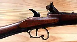 Der Hahn bildet den Verschluss. Durch den Hahnschlag wird der Patronenrand gequetscht und der Zündstoff entzündet. Dazu hat der Hahn eine Nase, die auf den Rand schlägt. Das Geschoss besteht entweder aus einer kleinen Schrotladung mit geringem Durchmesser der Schrotkugeln, einer Rundkugel oder einem kleinen Langgeschoss.