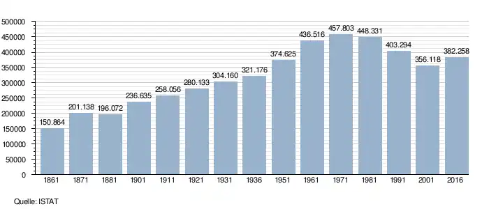 Nachdem die Stadtbevölkerung sich im 19. Jahrhundert verdoppelt hatte, verdreifachte sie sich im 20. Jahrhundert (siehe auch Demografie Italiens) und profitierte stark von Tourismus und der Industrie; auch Fernhandel und Finanzwirtschaft blühten auf.