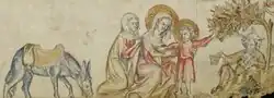 Die Flucht nach Ägypten ist eine Erzählung aus der Kindheit Jesu, die im Matthäusevangelium und außerkanonischen Evangelien überliefert ist (Mt 2,13 ). Der Flucht wird als einer der Sieben Schmerzen Mariens im katholischen liturgischen Kalender am 15. September gedacht.[1] Der Rückkehr der heiligen Familie aus Ägypten wurde ausweislich überlieferter Martyrologien spätestens seit dem 9. Jahrhundert am 7. Januar gedacht.[2]
